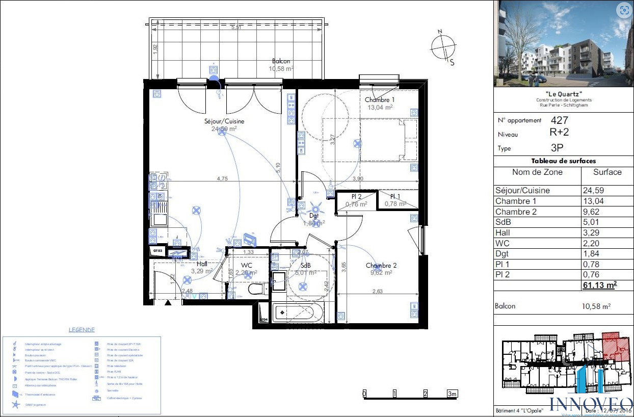 Nous vous proposons un logement 3 pièces n° 427 de 61.13 m² situé au 2ème étage de la Résidence "LE QUARTZ" (immeuble construit 2017)