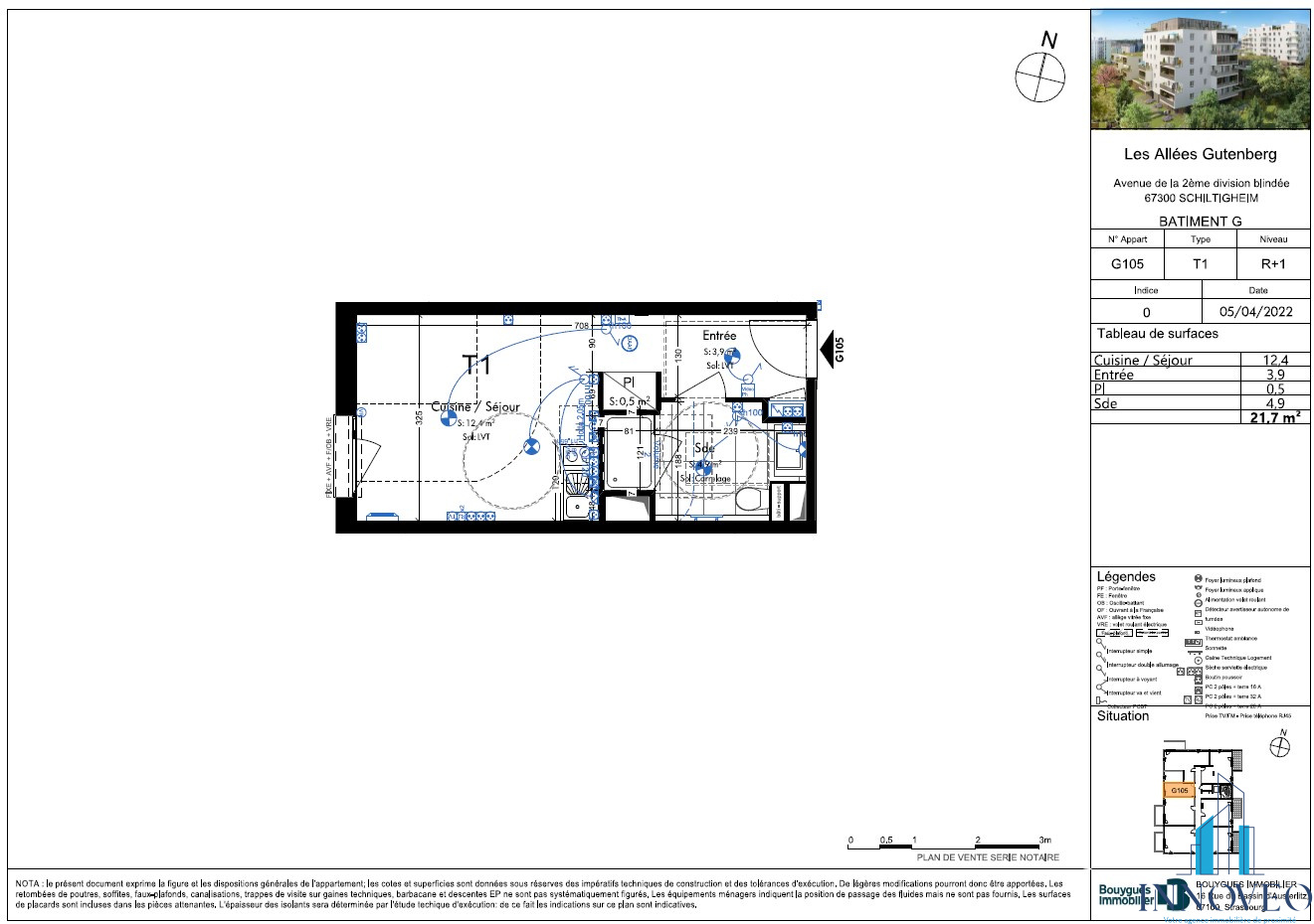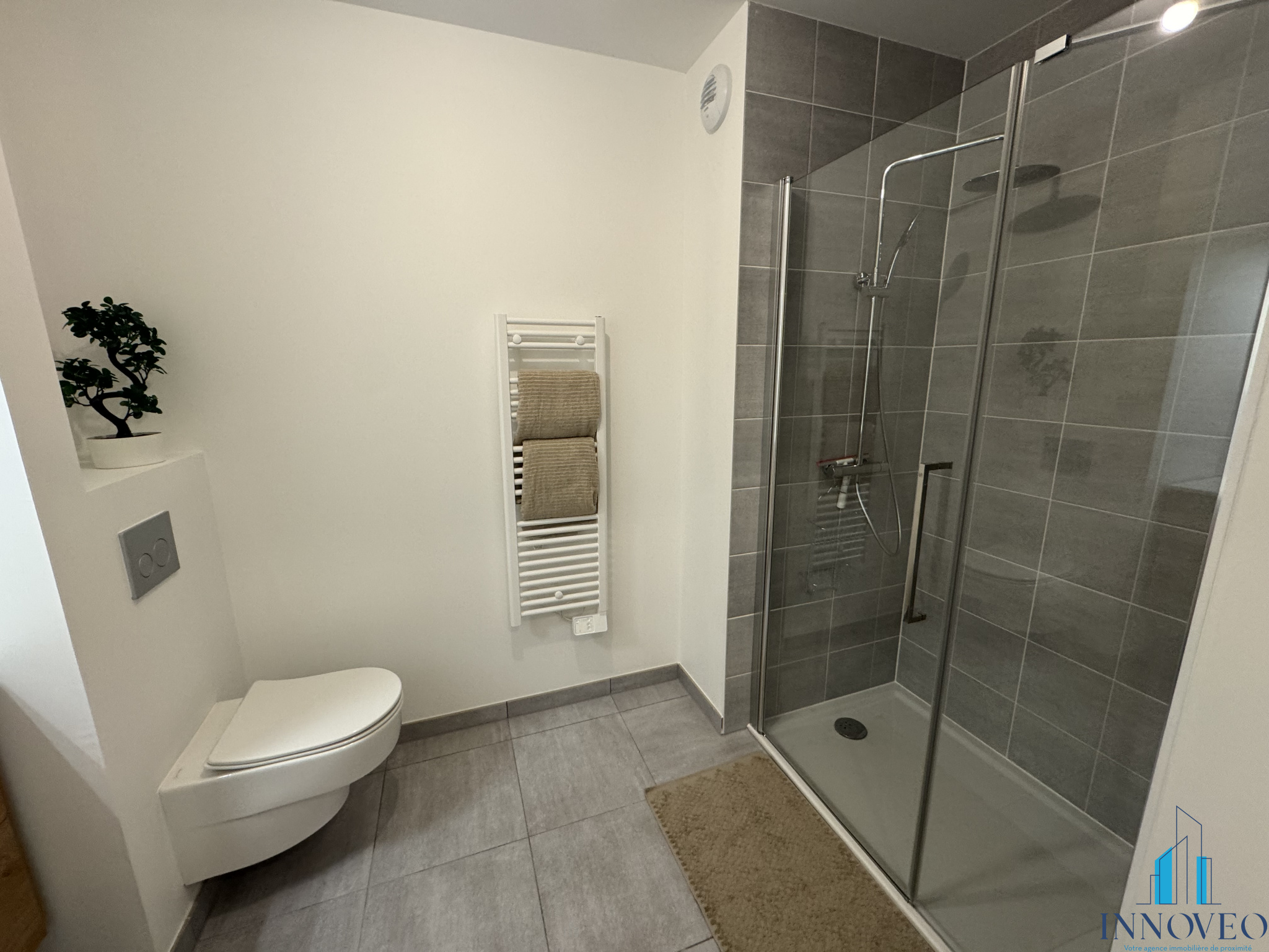 Nous vous proposons à la location dans une résidence neuve "LES ALLEES GUTENBERG", un studio de 21.70 m2 meublé situé au 2ème étage sur 3 comprenant : une pièce principale toute équipée (lit, bureau, télévision, table et chaises, vaisselles, ustensiles de cuisine) avec une cuisine équipée (four, plaques de cuisson, hotte et réfrigérateur top avec compartiment freezer), une salle d'eau avec douche et WC. Possibilité de mettre un lave linge dans la pièce-principale.